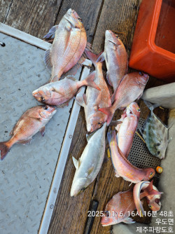 세분이서 펑크내시고 세분모시고 참돔.옥돔 타이라바 다녀왔읍니다참돔이라 옥돔이랑 어군은 제법 들어왔는데 수온이 고수온으로 참돔크기가 조금아쉬웠읍니다=== 제주 파랑도호선단 선상낚시 ===파랑도호 : 010-7589-3114청송호 : 010-3691-5157오시는길 : 제주도 제주시 도두항,한림항,신창항,모슬포항홈페이지 : http://bada.sunsang24.com/