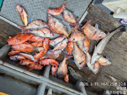 오랜만에 출조했읍니다기름값폭등과 여러가지 배인수(킹덤호) 하는과정에 시간을 많이 할애했네요 오늘은 세분이서 우도골창공략 비롯 늦은 10시출항~~물흐름이 없을때 대왕쏨뱅이 그나마